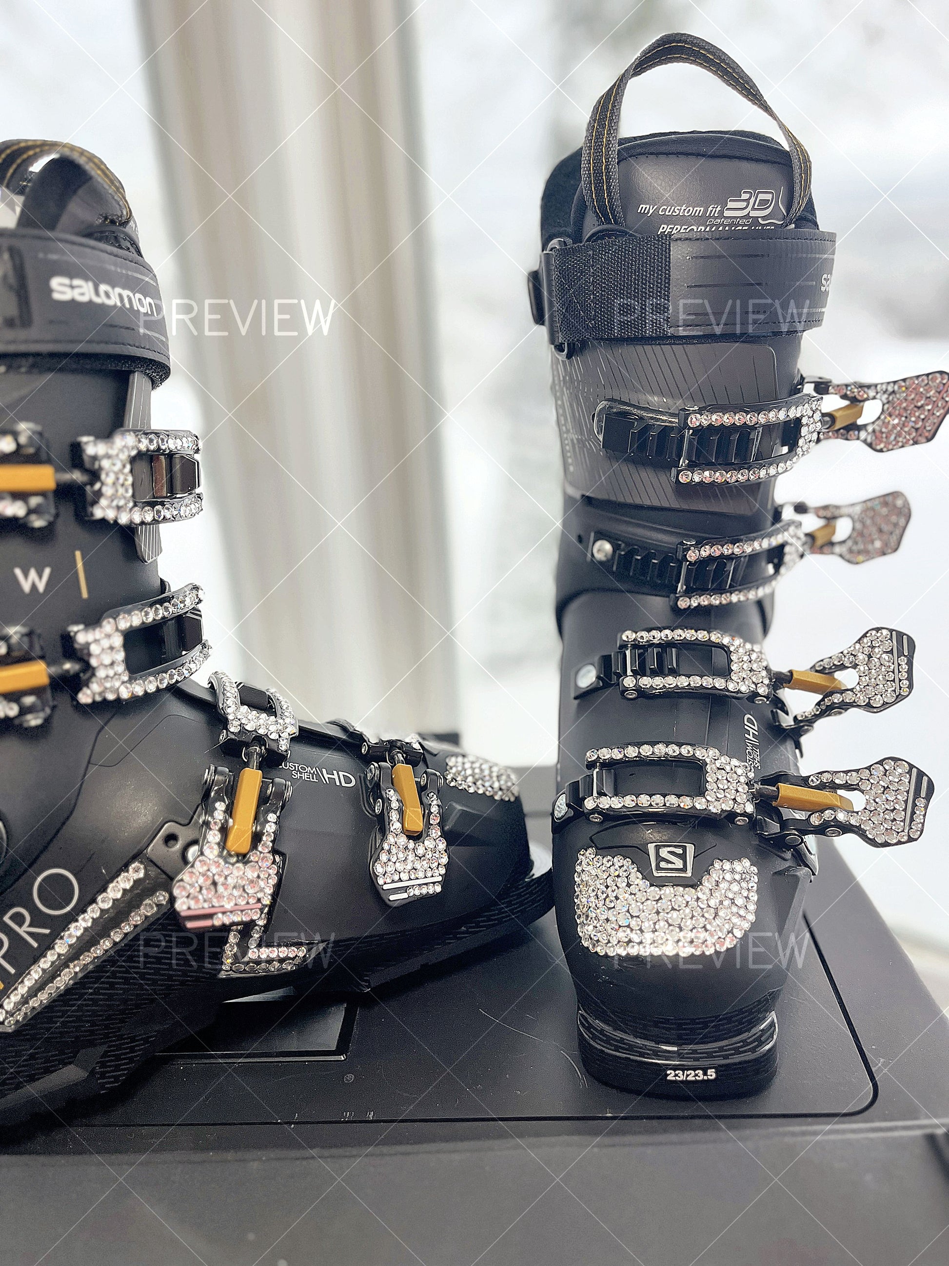 4. Pricing. Pricing for custom ski boots will depend on cost of the boot, type of crystals and custom design.